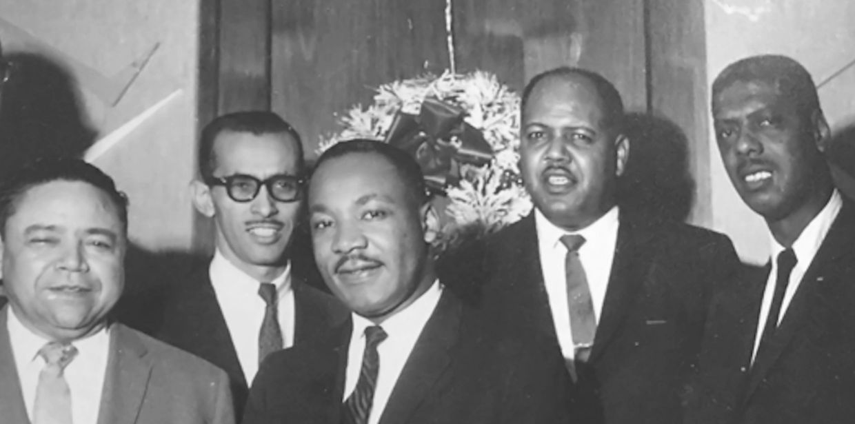 Pictured (l-r): Clarence Henry, Rev. Wyatt Tee Walker, Rev. Dr. Martin Luther King, Jr., Rev. Abraham Lincoln Davis, and Atty. Israel Meyer Augustine. Pulitzer Prize Awardee David J. Garrow in "Bearing the Cross" states that on February 10th, Dr. King called a second meeting of the "Atlanta Transportation Conference" group to meet in New Orleans. An organizing meeting was scheduled for