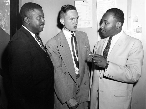Rev. Ralph Abernathy's (left) and the Rev. Robert Graetz's (center) homes were bombed in Montgomery, AL on the morning of January 10, 1957 (joined by Rev. Dr. Martin Luther King, Jr.)