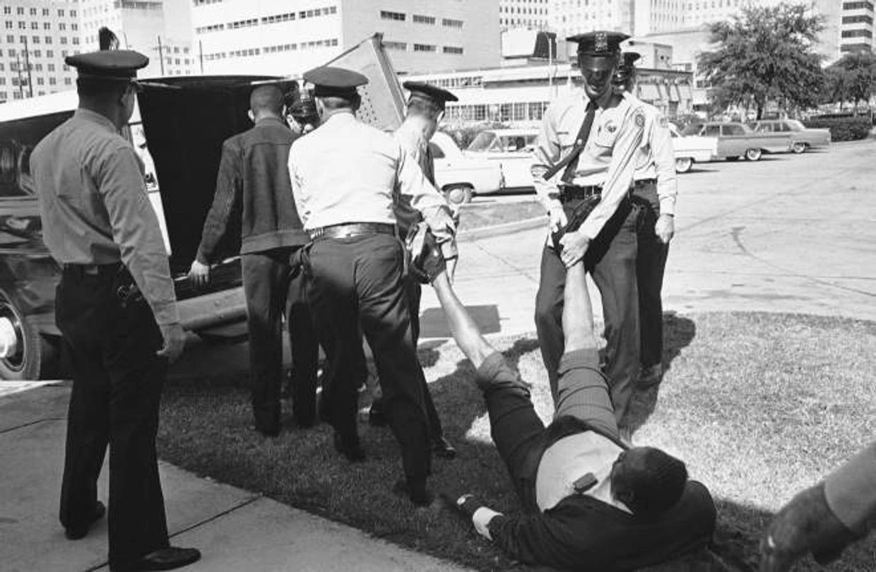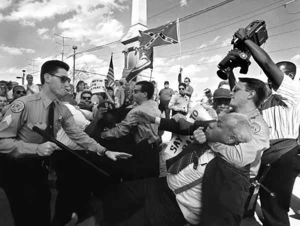Restrained by the NOPD during a scuffle at the controversial Liberty Monument in March of 1993