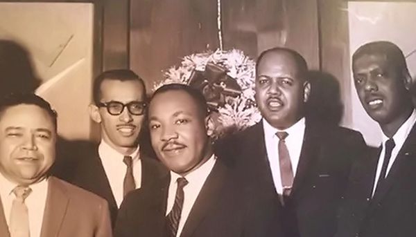 (PICTURED L-R) Clarence "Chink" Henry; Rev. Dr. Wyatt T. Walker; Rev. Dr. Martin Luther King, Jr.; Rev. A.L. Davis, Jr.; and Attorney (Judge) Israel Meyer Augustine
