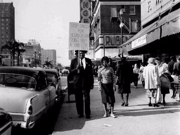 "STOP PAYING FOR SEGREGATION, Don't Buy At This Store" Campaign in front of F.W. Woolworth in New Orleans