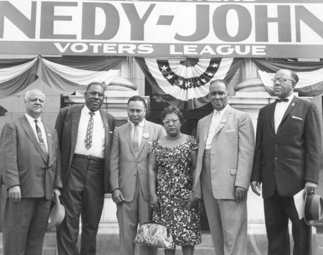 (L-R) Atty. Alexander P. Tureaud, Rev. Dr. Avery Alexander, Ellis F. Hull, Sr., Kathleen "Katie" Whickam, unidentified, and Jackson V. Acox, Jr.